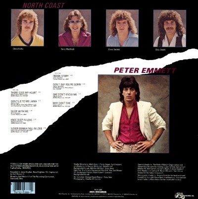 Notes: | This album was supposed to be a comeback vehicle for Sonny Geraci, onetime member of the 60's Cleveland group The Outsiders and also of the early 70's group Climax which had a hit with the song "Precious and Few". Geraci, assuming the name Peter Emmett, is accompanied in the studio by the original line-up of The Cruisers (minus Donnie Iris) to play on this album. Although the back album cover includes pictures of a band called North Coast, these other musicians (from left to right coinciding with their pictures: Chris Kafka, Terry Manfredi, Dave Garlic, Billy Smith) were not involved with the recording of the album. Until recently, it was not known whether North Coast actually existed or was simply a fictional group put together for use on the album's cover as part of the "story". However, it has now been confirmed from the band's drummer Billy Smith that North Coast did indeed exist and was brought onboard after the album was recorded. The band debuted the album live at the Cleveland Agora Theater opening for the "Generators". The album didn't get much airplay, and while North Coast stayed together playing in or around the Cleveland/Akron area for 2 years, they eventually disbanded and all went their separate ways. Interestingly, the Mark Avsec penned tune "She Don't Know Me" was later re-recorded by none other than BON JOVI for their debut album. |